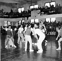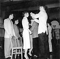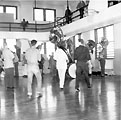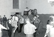Scudder and Jean Anglemeyer dancing, Jim Watson to left of Jean against