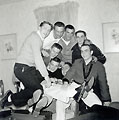 Biff Hess, Chuck Hauber, Don Price, in center Jack Meyers, Jim Davis, Don