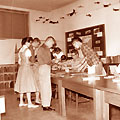 Loretta eating, Jean Anglemyer, Peggy Schuyler.