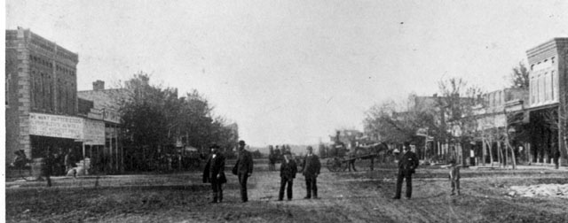 The note on the picture says "Looking North" but I believe it is almost certainly looking SOUTH. The building at the right looks like Read's Bank, which was where the north side of Graves Drug is now, which is at 9th and Main. The building on the right has an angled wall which is the early version of the First National Bank at the same corner.